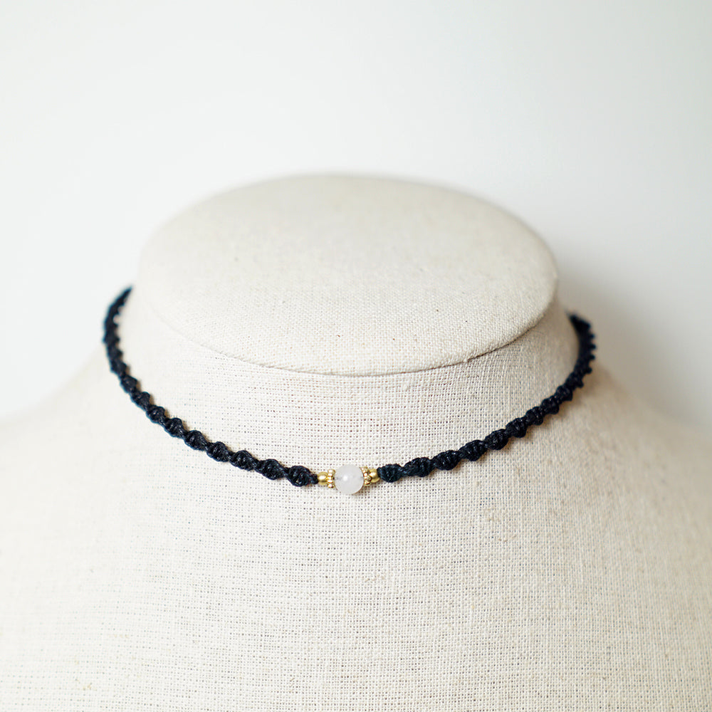 Un collar de macramé entorchado con cuarzo blanco natural, ligero y cómodo, con un diseño limpio y sereno.