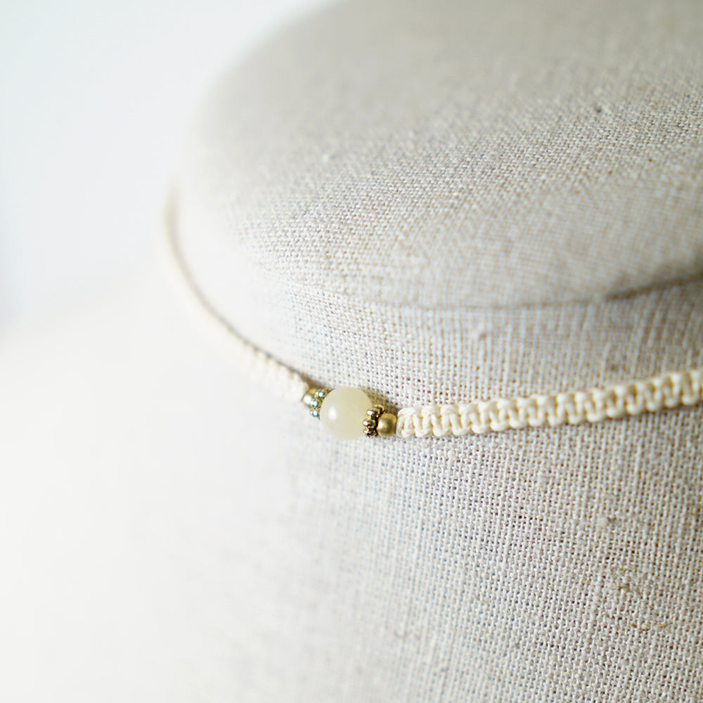 Este collar destaca por su diseño simple y ligero, cómodo de llevar y fácil de integrar en el día a día. El macramé plano aporta un acabado limpio y agradable, y el citrino queda engarzado de forma sencilla para que su color amarillo suave sea el protagonista.