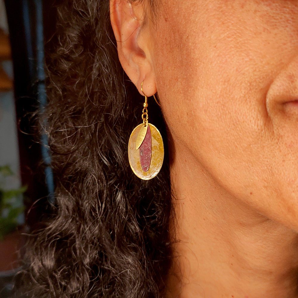 Las formas limpias y los tonos vivos crean una pieza que aporta movimiento, contraste y un punto moderno sin exagerar. El acabado en latón añade brillo suave y una presencia natural que realza sin recargar.