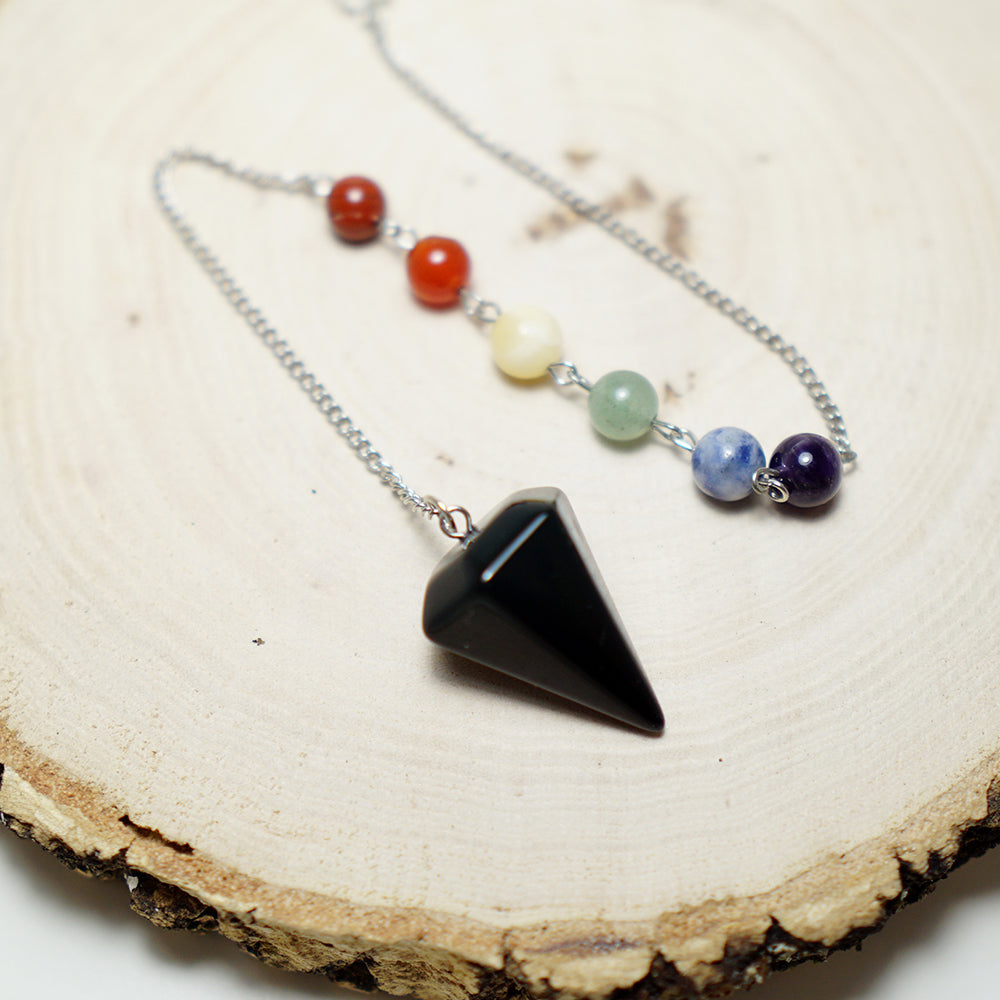 Péndulo de 7 Chakras con Obsidiana — protección, verdad y fuerza interior